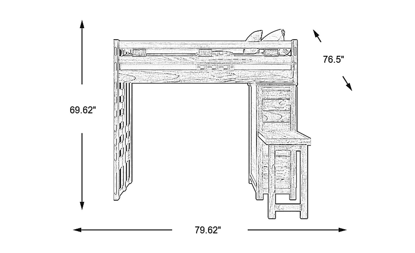 Get a space saving solution without sparing on timeless style appeal when you choose the Creekside 2.0 loft bed for your child's room. Crafted of pine solids and veneers in a warm chestnut finish, this bed sits atop a loft that features a storage loft chest on one side with a ladder built into the opposite side of the frame for easy-peasy ups and downs to and from bed. A desk affixed to the frame of the loft makes study time easy, while the area beneath the bed provides space for play, pretend or coordinating furniture. Mattress and foundation sold separately. This product requires a bunkie board (sold separately).