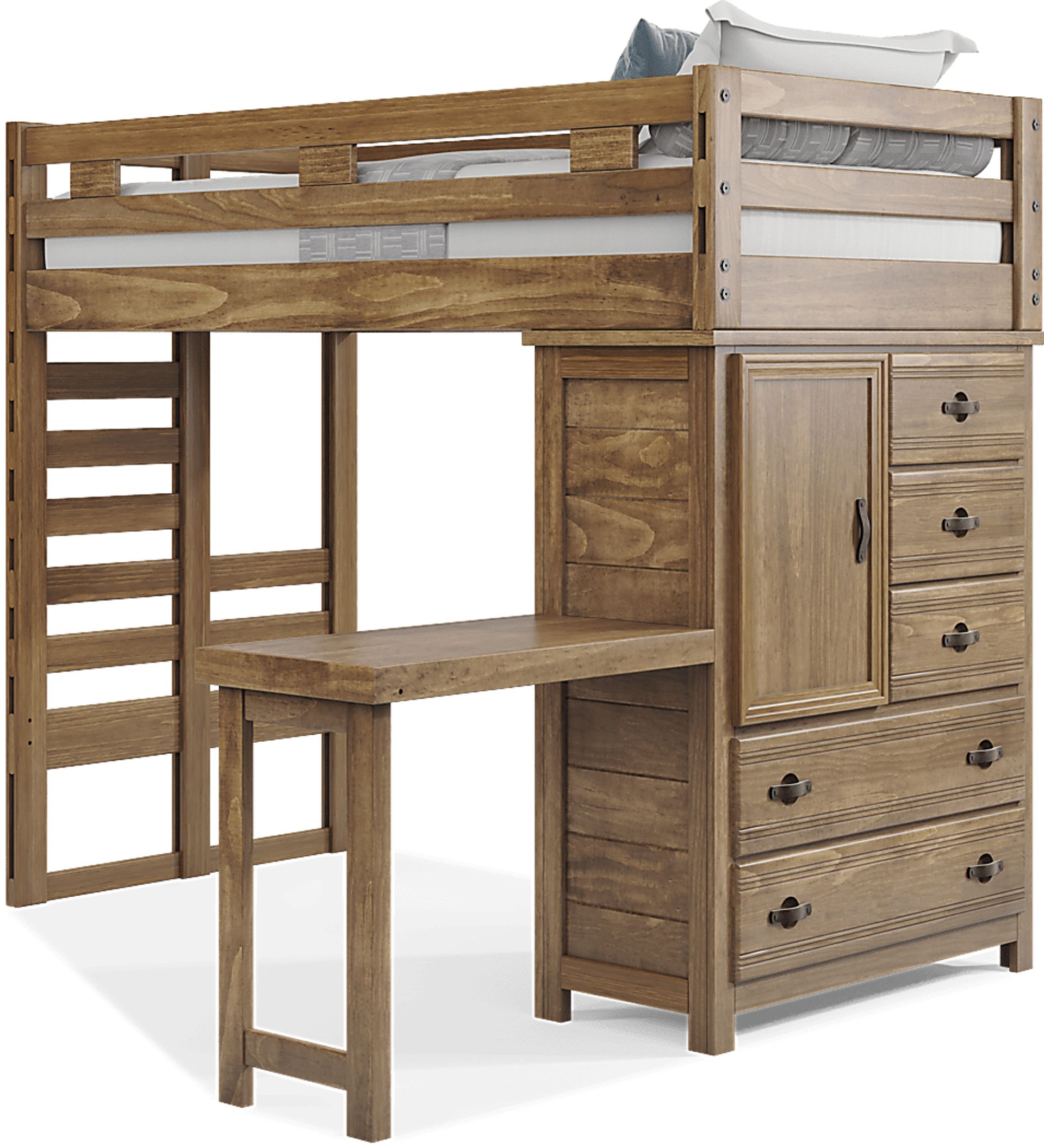Kids Creekside 2.0 Chestnut Twin Loft With Loft Chest And Desk Attachment
