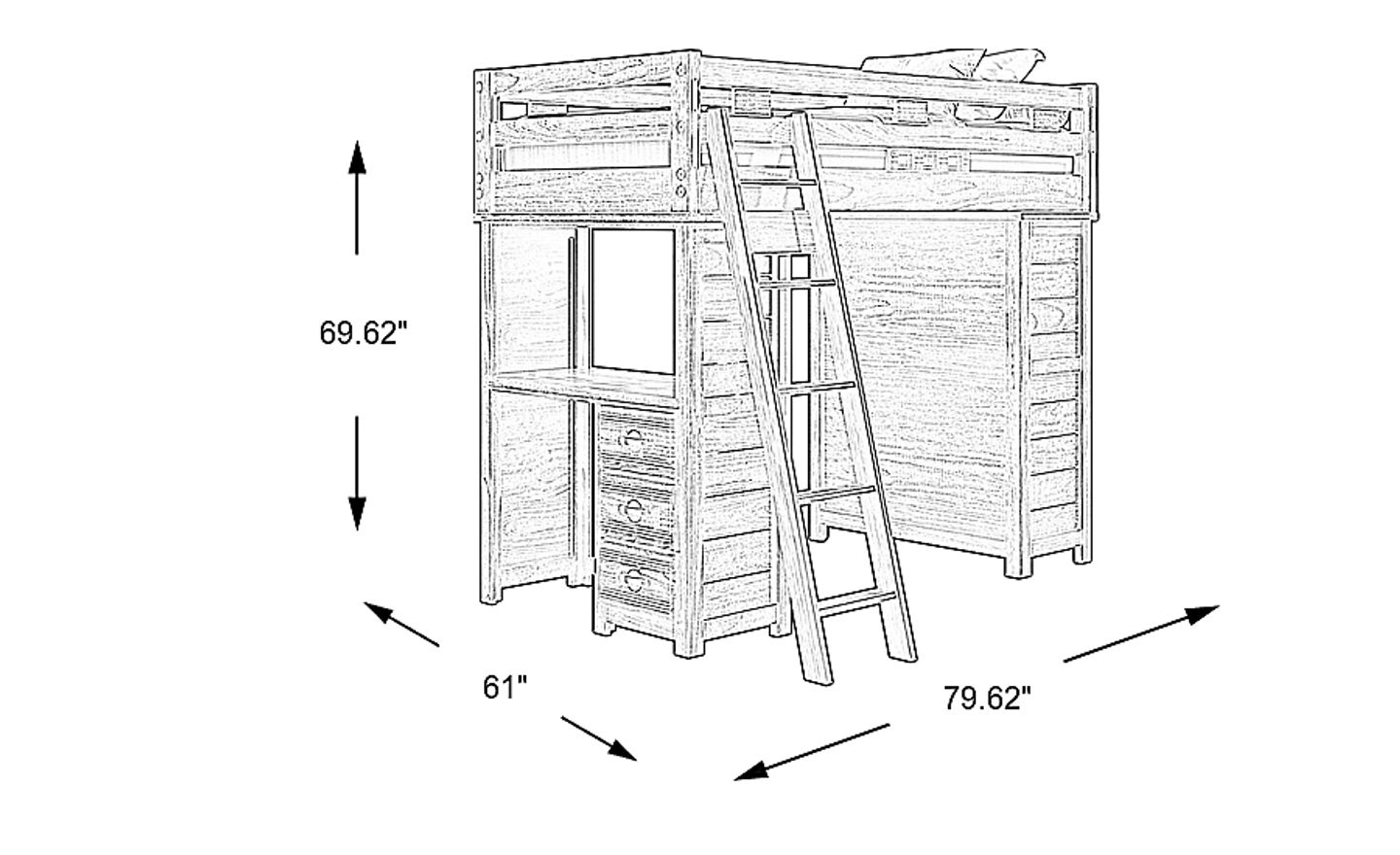 Get a space saving solution without sparing on timeless style appeal when you choose the Creekside 2.0 loft bed for your child's room. Crafted of pine solids and veneers in a warm chestnut finish, this twin-size bed sits atop a loft that has a storage loft chest on one side of the frame with a desk on the opposite end that features three drawers of space for comics, study supplies and more of your child's favorite things. Just beneath the frame, there's ample room for play, pretend or coordinating furniture. An accompanying ladder affixed to the frame provides easy-peasy ups and downs to and from bed. Mattress and foundation sold separately. This product requires a bunkie board (sold separately).