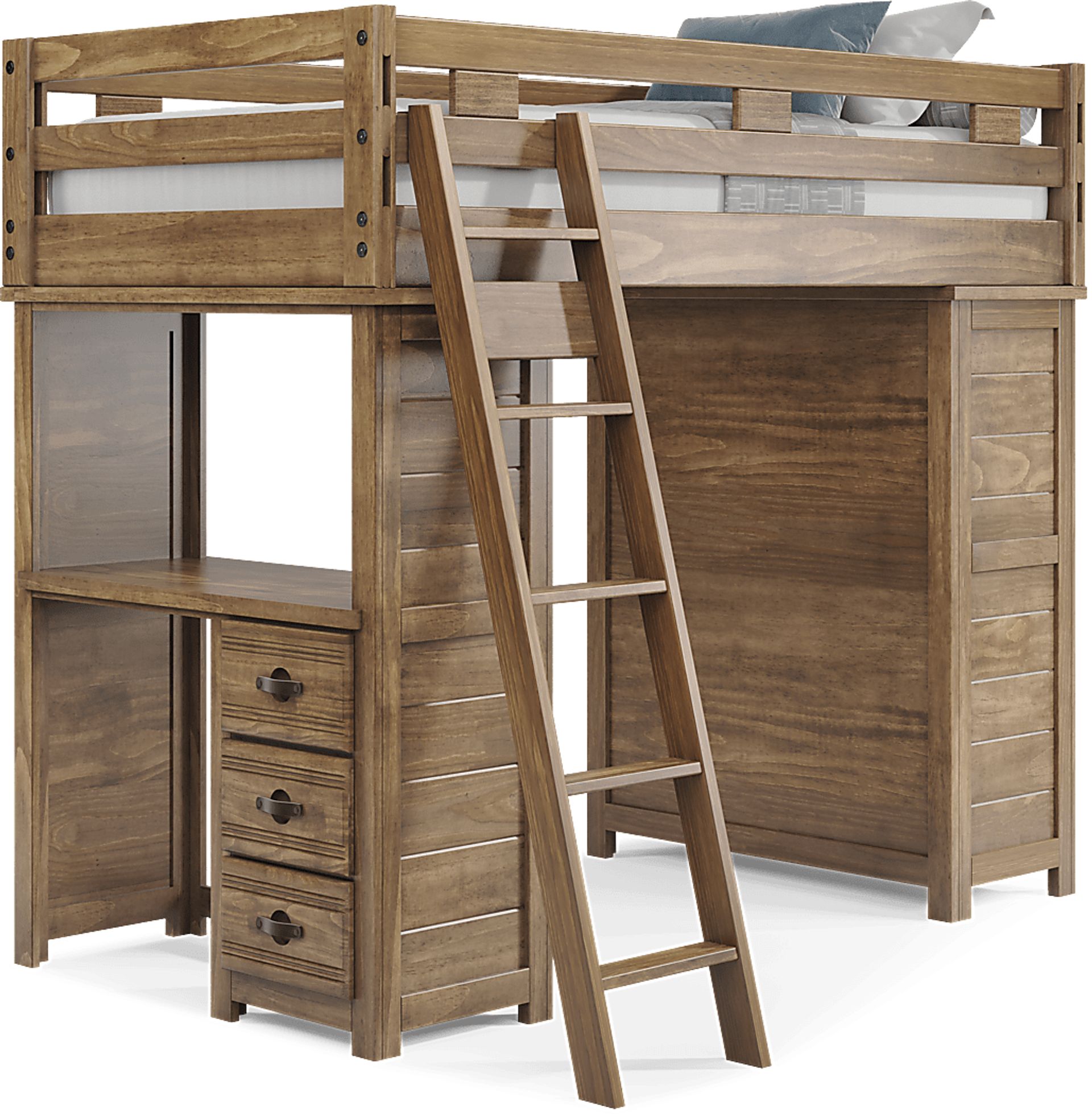 Kids Creekside 2.0 Chestnut Twin Loft With Loft Chest And Desk