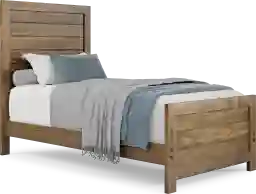 With its timeless look, the Creekside 2.0 panel bed is an excellent choice for your child's room. Crafted with traditionally built mortise and tenon frames with tongue and groove panels and pine veneers in warm chestnut finish, this twin-size bed features a panel design on the head and footboards for eye catching appeal. Mattress and foundation (if required) sold separately.