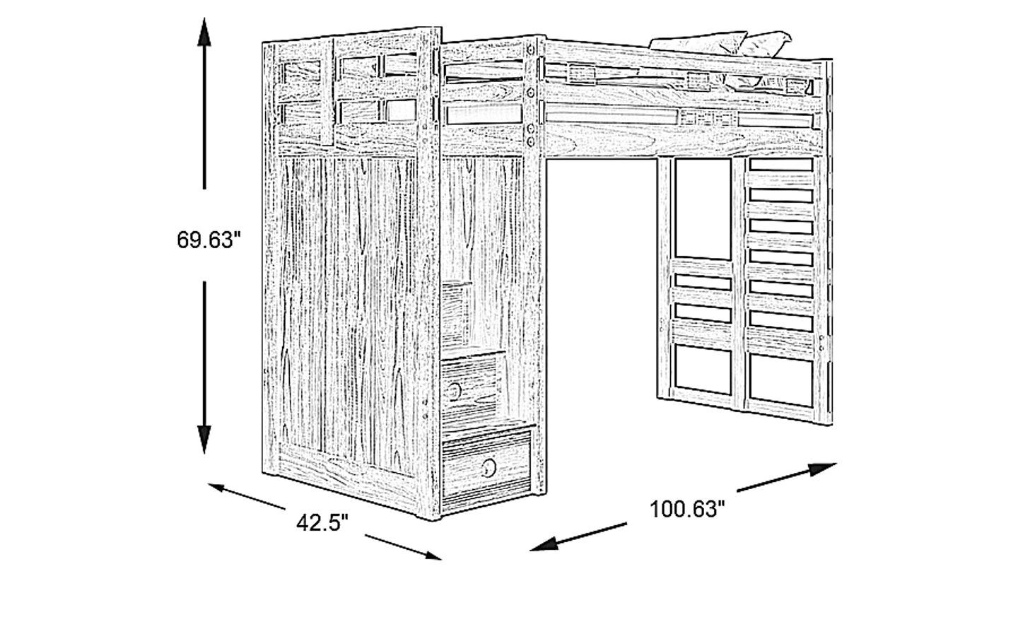 Get a space saving solution without sparing on timeless style appeal when you choose the Creekside 2.0 loft bed for your child's room. Crafted with pine veneers in a warm chestnut finish, this twin bed sits atop a loft that features a ladder built into the side of the frame with five steps configured onto the opposite end for easy-peasy ups and downs to and from bed. Additionally, four of the steps have drawers to help store away some of your child's favorite things. Just beneath the bed, there's ample space for play, pretend or coordinating furniture. Mattress and foundation sold separately. This product requires a bunkie board (sold separately).