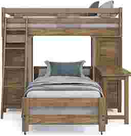 Get a space saving solution without sparing on timeless style appeal when you choose the Creekside 2.0 loft bed for your child's room. Crafted of pine solids and veneers in a warm chestnut finish, this twin-size bed sits atop a frame that features two storage chests equipped with ample space for clothes, accessories and even more of your child's favorite things. Additionally, an accompanying desk attachment affixes to the frame for an extra study surface while a ladder provides easy-peasy ups and downs to and from the loft bed on top. Just beneath the frame, the twin-size caster bed offers another place to sleep. Mattresses and foundations sold separately. This product requires a bunkie board (sold separately).