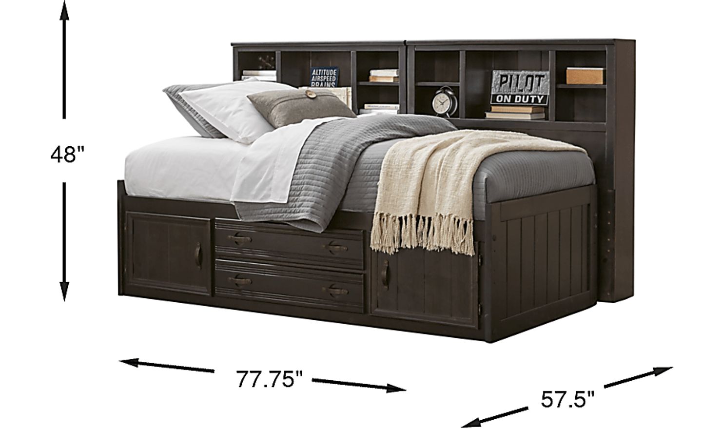 Kids Creekside Charcoal 5 Pc Full Captain's Bookcase Wall Bed