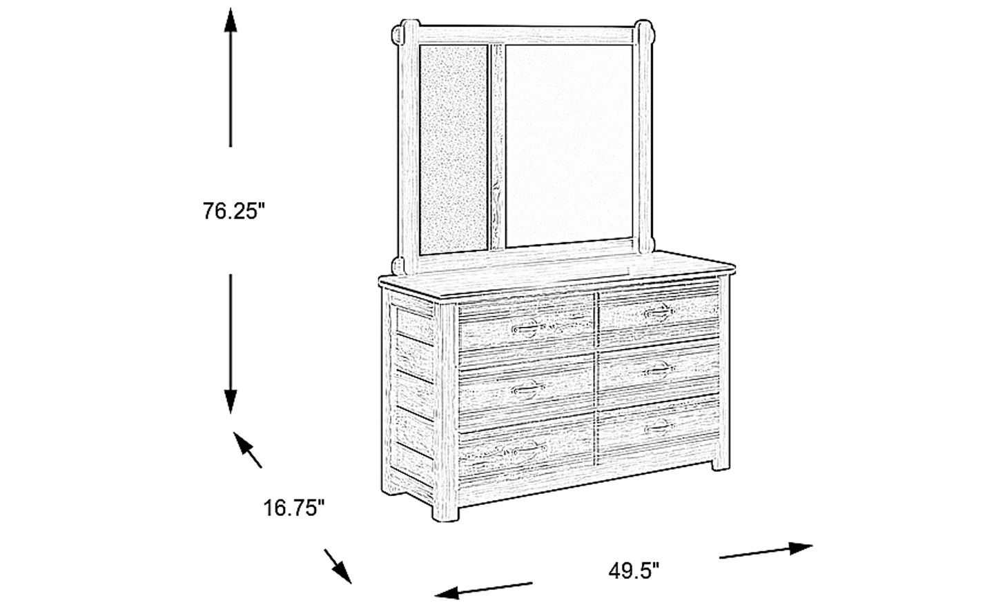 49.5"w x 16.75"d x 76.25"h