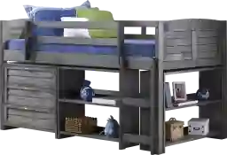 The Daintree features a modular louvered low loft system which makes a great space saver with underbed storage area, 3 drawer chest, and a small and large bookcase. It creates ample storage space in any active kids bedroom. Customer assembly is required.