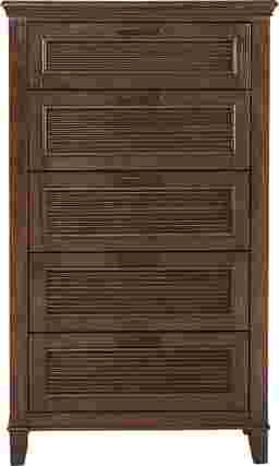 The Dashel chest's classic design and versatile transitional style ensures that it will be an excellent addition to your child's room. Five drawers provide plenty of storage space for their entire wardrobe, while French and English dovetail drawer joints ensure its stability over the years. Crafted with pine solids and Asian wood veneers, the brown finish features wire-brushing and weathering details for a casual, rustic touch. Reeding details along each drawer front adds depth.