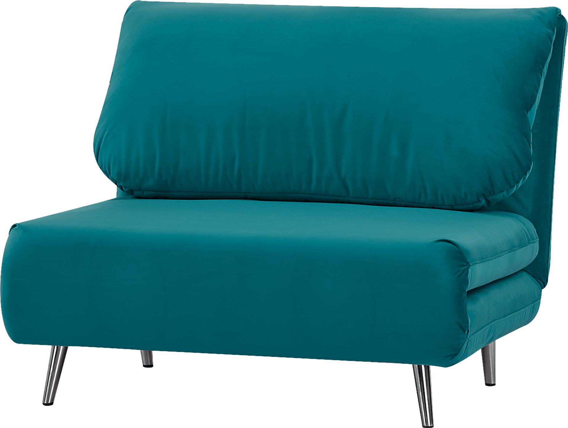Settee by day and sleepover style by night, the Daydream convertible chair is everything you've been dreaming of and more! The comfy pillow shaped back has a three-point ratcheting click-clack mechanism that's as fun to reposition as it is to say. You won't believe how easy it is to unfurl the seat, swiftly transforming the chair into the perfect resting place for overnight friends. Upholstered with soft fabric that has a velvet-like texture in a jewel-tone blue color, the piece's metal legs are finished in shimmering chrome for the perfect final touch. 100% Polyester