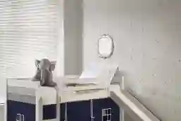 This bed is specifically engineered for space optimization in compact living environments. With a footprint of approximately 41" x 78", it maximizes vertical space by elevating the sleeping area. The "low loft" height is particularly advantageous in apartments, providing a dedicated play zone with a navy tent underneath without making the room feel cramped or visually overwhelmed.