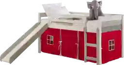 This Debuel twin loft is the perfect starter bed for your little one. The slide feature provides a fun way to get out of bed. The red tent provides the perfect hidden play area where imaginations can run wild. Customer assembly required.