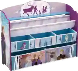 This adorable Disney Frozen II deluxe toy & book organizer will melt your heart (and keep your child's space clean!). Designed for little kids with big imaginations, this cool toy and book organizer features colorful graphics of Anna, Elsa, Kristoff and Sven, plus comes with reusable vinyl cling stickers that allow your child to decorate the sides themselves. The stickers feature inspiring phrases and princess themed items that encourage kids to create magical scenes on the sides. Supported by a sturdy frame, this practical storage piece features 3 large fabric toy bins, 2 extra-large fabric toy bins and an easy-to-reach bookrack at the top. A great option for any bedroom, playroom or living room, the Disney Frozen II deluxe toy & book organizer will get kids cleaning up in flurry. Customer assembly is required.