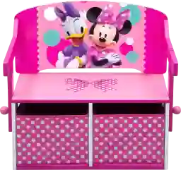 The Disney Minnie Mouse kids activity bench is simply ear-resistible! Adorned with all things Minnie, including a polka dot print, bows and pretty pink hue, this charming bench is timeless, just like Minnie Mouse herself. An ideal choice for your growing Mouseketeer, it features a 3-in-1 design that easily converts from a storage bench to a desktransitioning from playtime, to a perfect space for homework, crafts and more, in seconds! This incredibly versatile bench/desk also features ample storage underneath with two fabric bins, offering a perfect spot for kids to keep their toys, books or art supplies. A smart and stylish addition to your little one's Clubhouse, this sturdy activity bench will be cherished for years to come. Customer assembly is required.