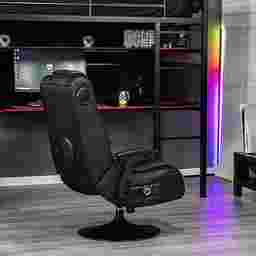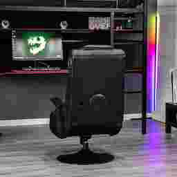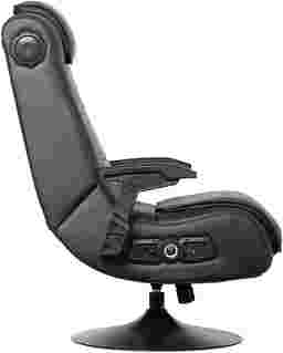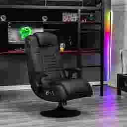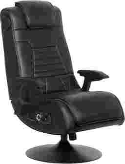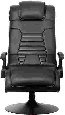 Casual and professional gamers alike can now not only hear sounds of the game, but actually feel it with the Ekanger II dual audio video gaming chair. The Ekanger II game rocker has two speakers hidden in the head rest and a subwoofer that makes you feel like you're actually inside of the game. This places speakers and ported power subwoofers into the open space - not just the frame - within the Ekanger II to magnify sound quality and intensify your experience. The chair's vibration motors sync with your audio's bass tones to create an even more powerful full-body sensation. The supportive base elevates you and allows you to tilt and swivel for hours of comfort while the gunstock armrests, ergonomic design, and head rest provide extra back and neck support. Control panel includes separate volume, bass and vibration controls, and input and output jacks for connecting to your audio source. The wireless bluetooth receiver is built-in and the box includes your wireless transmitter that wil