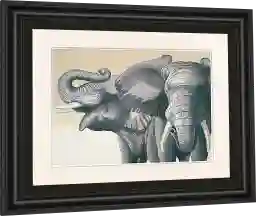 Elephants, the largest land mammals, are depicted in the Elephant Patrol artwork. This beautifully designed piece is elegantly framed using a 3 inch profile made of a scratch resistant MDF in a midnight dark color. It is framed under real glass and it is ready to hang with all the hardware pre-attached.