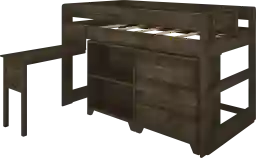 Farmhouse style, made for sleep, play, and storage. The Eliska I twin-size low loft bed with dresser, bookcase, and desk is the ideal combination of functional and fun that kids and parents love. This low loft bed features a 3-drawer dresser, 2-shelf bookcase, and hook-on desk to maximize space for sleep, study, and storage. Solid pine wood construction provides strength and durability, while 13.5guard rails keep sleepers safe and secure. Sturdy & Stable Strong slats and metal support bar create a 400 lb resting weight capacity. Space-Saving Loft design maximizes floor space. Total footprint including desk measures 78.25L x 74W x 48.25H Loft bed measures 78.25L x 43.5W x 48.25H without desk attached. Designed to accommodate standard twin-size mattresses that are 5-7 inches. Slatted base included, no box spring or bunkie board required. Mattress and bedding not included. Built-in ladder can be placed on either side of the bed to fit your space. Customer assembly required.