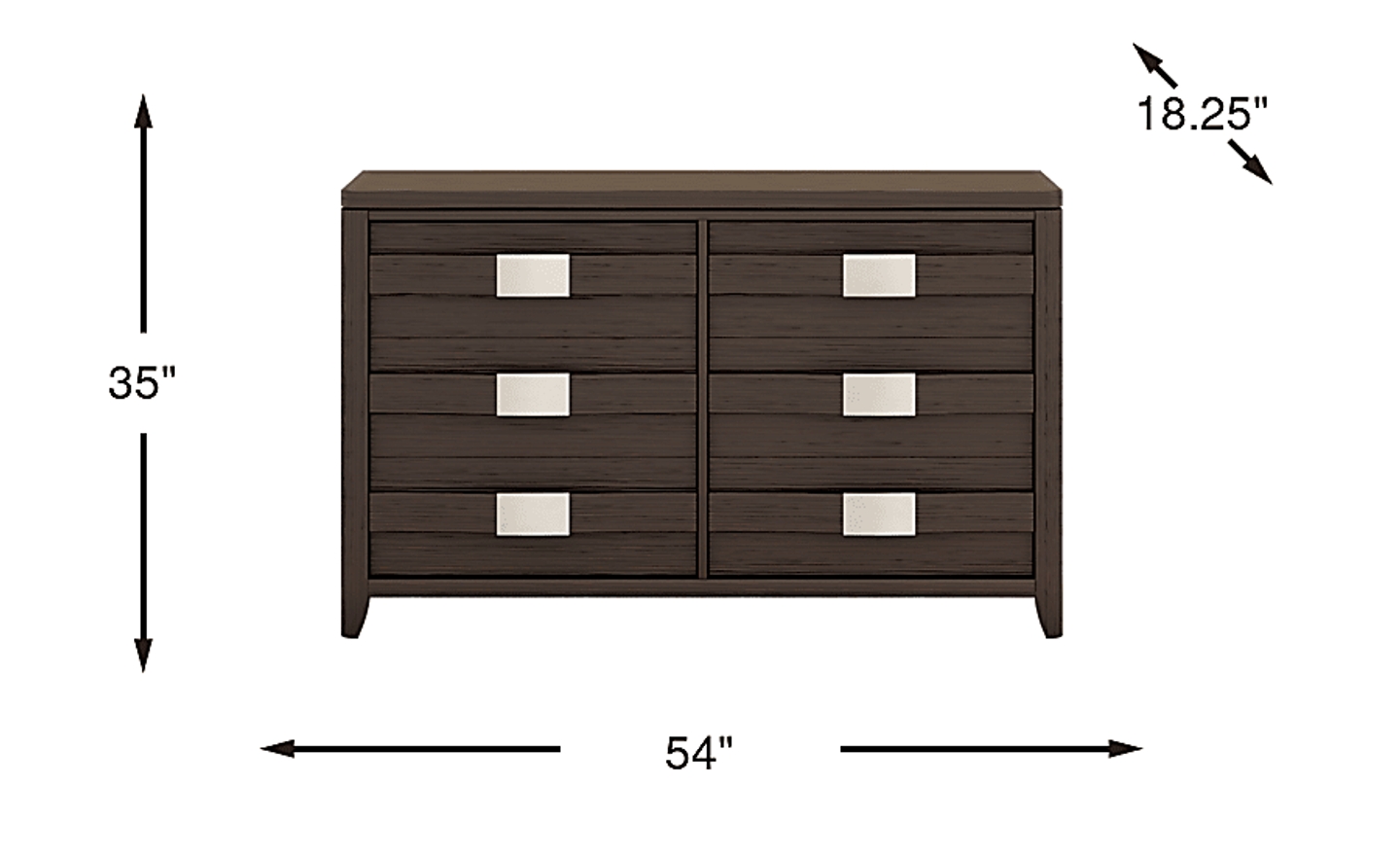 Perfect for keeping their clothes stored and tidy, the Elliot Park dresser is a great addition to your kid's room. This stylish dresser is made of pine wood solids with straight oak veneers in a cinnamon-brown finish. A horizontal, curved panel goes across the front of each of the six drawers to add a unique touch to this piece.