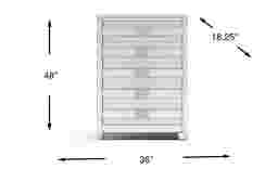 Expanded storage is available for your kid's room with the Elliot Park chest. This storage chest features five drawers perfect for additional clothes or for when a traditional dresser is too wide for their space. Made of pine solids and straight oak veneers in a platinum finish, this piece is attractive and built to last. Curved panels along the front of each of the drawers finishes this piece with a unique appearance.