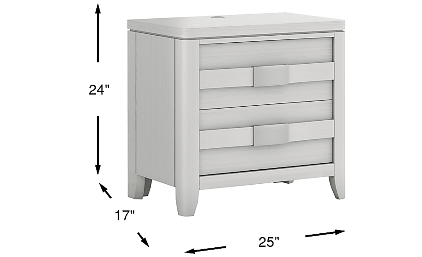 Keep your child's books and treasured items close at hand with the Elliot Park nightstand. Crafted of pine solids with straight oak veneers, this nightstand features an attractive platinum finish that can match a variety of room decors. The two drawers of this nightstand each have a unique curved panel along the fronts that coordinate with other pieces of this collection. A built in USB port helps keep devices charged and nearby.