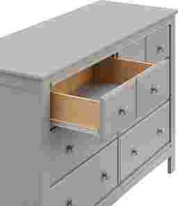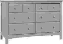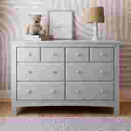 The Elun 6-Drawer Double Dresser is a versatile, space-saving piece that enhances the look of any nursery or bedroom. It features a new, simplified assembly process that saves time and requires fewer steps and tools. Made from strong, high-quality wood and composites, this dresser includes Euro-glide drawer glides. The Elun meets or exceeds all federal safety standards and complies with federal anti-tipping regulations. It is also backed by a 1-year limited manufacturer's warranty. Customer assembly is required.
