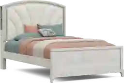 Cute for kids, perfect for teens and secretly the coolest style in the whole house, Emilie Rose is what happens when smart design meets major main character energy! Crafted with a fresh wire-brushed gray finish, this piece features an upholstered headboard framed by a multi-colored LED strip that literally lights up the room on command via touch or remote. You can also download the Lotus Lantern app and customize brightness, color and sync the lights to your music. The sides of the headboard are equipped with cubby storage and feature USB-A and USB-C fast charging ports, offering the sleek look touches of convenience. The look wouldn't be complete without the headboard's sparkly fabric that glimmers in the glow of the lights. Mattress and foundation (if required) sold separately.