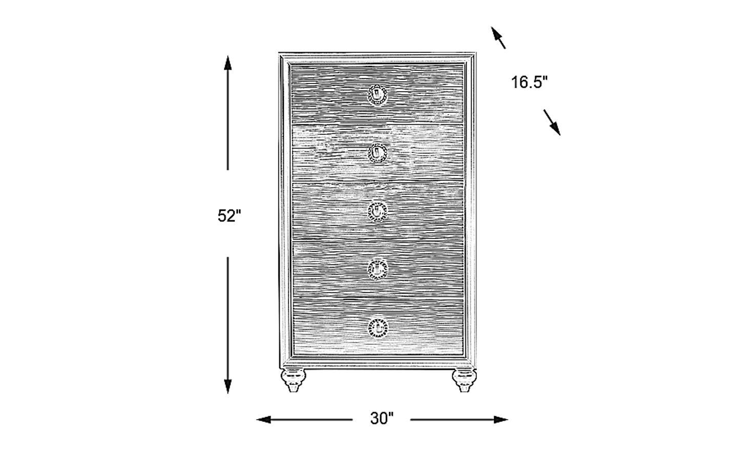 The fun, contemporary design of the Evangeline chest allows for its distinctive details to take center stage in your child or teen's room. Crafted of wood solids in a chic charcoal finish, bun feet, oversized hardware pulls, and embossed wavy detailing along each of the five drawer fronts create a modern sense of movement and style that really sets this piece apart. Each drawer utilizes English dovetail joints for stability, while dust-proofing along the bottom drawer keeps their entire wardrobe free from dirt and debris.
