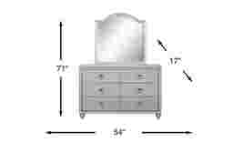 The Evangeline dresser and mirror set is the perfect place for wardrobe storage. Delightful details give each piece a sense of glam and whimsy that will brighten up your child or teen's bedroom. Crafted of wood solids in a chic silver finish, embossed wave details on each of the six drawer fronts create a modern sense of movement and style. English dovetail joints add strength and stability, while dust-proofing along the bottom drawers keeps drawers free from dust and debris. An elegant arched design on the mirror makes it a lovely addition to any girl's bedroom.