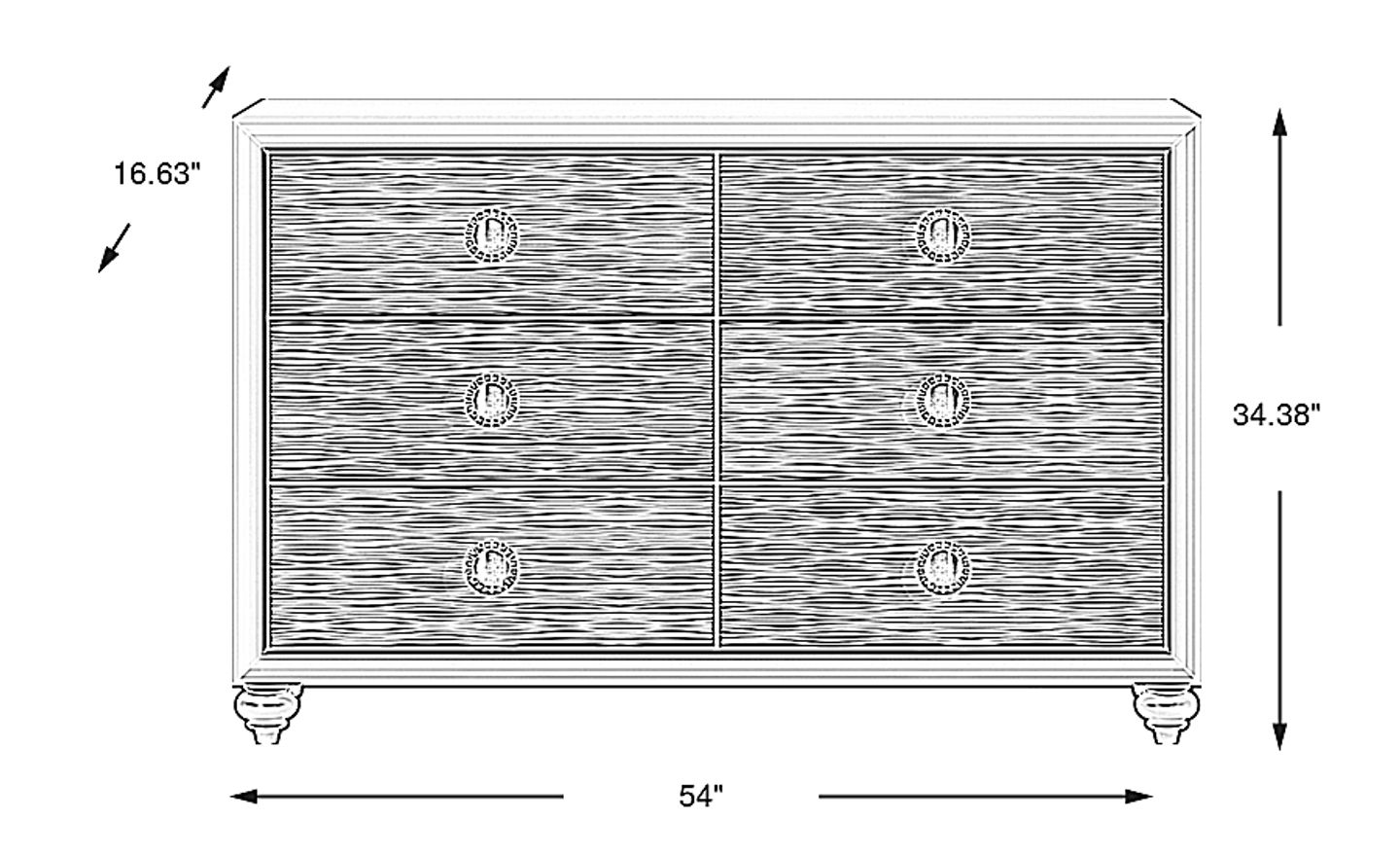 Delightful details give the Evangeline dresser a sense of glam and whimsy that will brighten up your child or teen's bedroom. Crafted in a chic silver finish, embossed wave details on each of the six drawer fronts create a modern sense of movement and style. English dovetail joints add strength and stability, while dust-proofing along the bottom drawers keeps drawers free from dust and debris. Oversized round hardware completes the modern vibe.