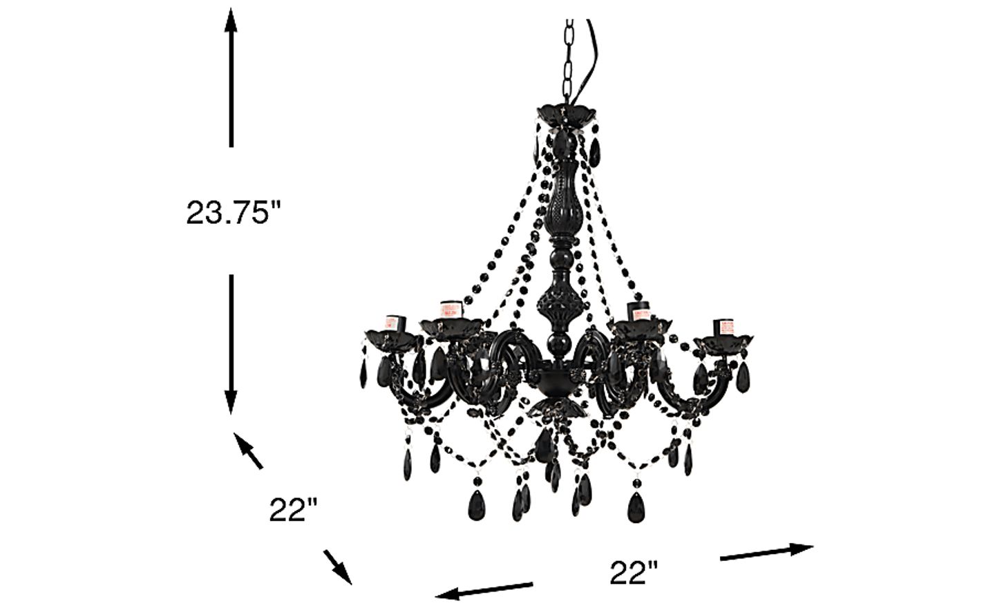 Bring a chic, modern touch to your little one's space with Fashionista Decor chandelier. Featuring sleek black acrylic arms and a contemporary design, this chandelier is the perfect way to add a bit of sophistication and sparkle to any bedroom, playroom, or creative space. The acrylic construction ensures durability while casting a beautiful, soft light that brightens the room with elegance. Ideal for older children or teens who love a bold, stylish look, this chandelier elevates the atmosphere with its unique flair and striking design. Customer assembly required.