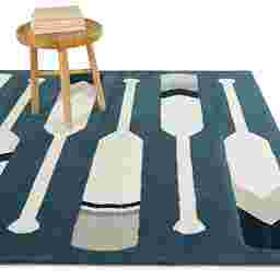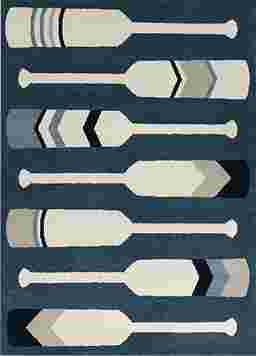 Bring the spirit of the great outdoors into your child's space with the Folkland rug. Featuring a playful repeating paddle motif, this design nods to lakeside adventures and camp-style fun while keeping the look clean and modern. A calming palette of muted blues, navy and soft gray makes it easy to pair with a variety of styles. Crafted from ultra-soft fibers, this rug's durable, non-shedding construction is kid- and pet-friendly, stain resistant and easy to maintain. Upholstery: 100% Polypropylene