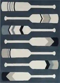Yes, this rug is specifically designed with a coastal aesthetic in mind. The repeating paddle motif and the palette of muted blues, navy, and soft gray evoke a lakeside adventure or camp-style feel. It pairs effectively with weathered wood furniture or nautical decor to create a cohesive and adventurous atmosphere in a child’s bedroom.