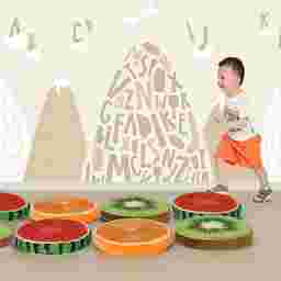 Bring story time, lessons, and fun to the floor with the kids Fruity floor cushions. This set of ten round floor cushions invites little ones to enjoy circle time comfortably and in healthy style. These colorful cushions give children a cozy and plush place to sit during playtime or any floor activity. These durable yet lightweight cushions are easy to move, They feature a built-in handle that allows easy transport, enabling children to take initiative and set up floor pillows independently. Attributing to its 100% polyurethane foam interior and a removable, machine-washable 100% polyester cover, these vibrant floor cushions are easy to clean and sanitize. Shaped like a sliced kiwi, they are perfect for creating fun and colorful floor seating areas and calm spaces in your learning, play and collaborative environments.