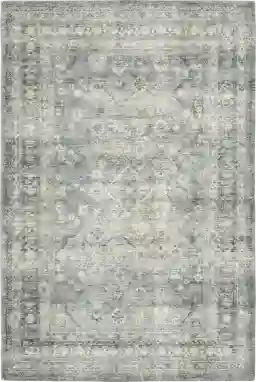 The Garden Treasures III collection showcases elegantly distressed traditional rug designs in a printed microfiber construction. The incredibly soft hand is enhanced by the soft focus appeal of the patterns in muted, tonal coloration of cool blues and grays as well as warmer pigmented tones of rosy clay and sandstone Vacuum regularly without a beater bar, spot clean only. Inherently stain, fade, wear-resistant for fuss-free maintenance. Machine Made from 100% Polyester and rated for high traffic, this 7'8 X 10' size indoor rug is perfect for dining rooms is living rooms and bedrooms.