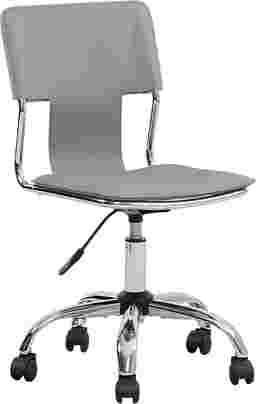 Sleek chrome and gray leather inspired fabric create the cool Garrison desk chair. It has a lever below the seat to adjust the height while wheels allow for easy movement. Single item room.