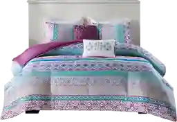 Update your bedroom with the chic boho flair of the Gidda comforter set. Featuring several globally inspired prints, this comforter flaunts bold and bright colors with a solid purple reverse to create a gorgeous boho look. The 2 matching shams mirror the design of the comforter, while 2 decorative pillows add the finishing touches and bring the comforter set together. Customer assembly is required.