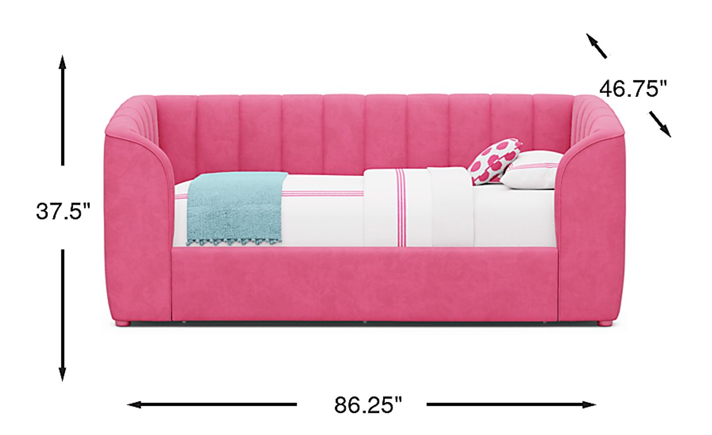 This daybed is an excellent solution for space-challenged rooms or urban apartments. With a width of approximately 86 inches, it fits neatly against a wall to provide a sophisticated, sofa-like seating area during the day. Its high back and vertical channeling offer a cozy lounge-ready look, making it perfect for a room that serves as both a daytime play area and a nighttime sleeping space.
