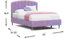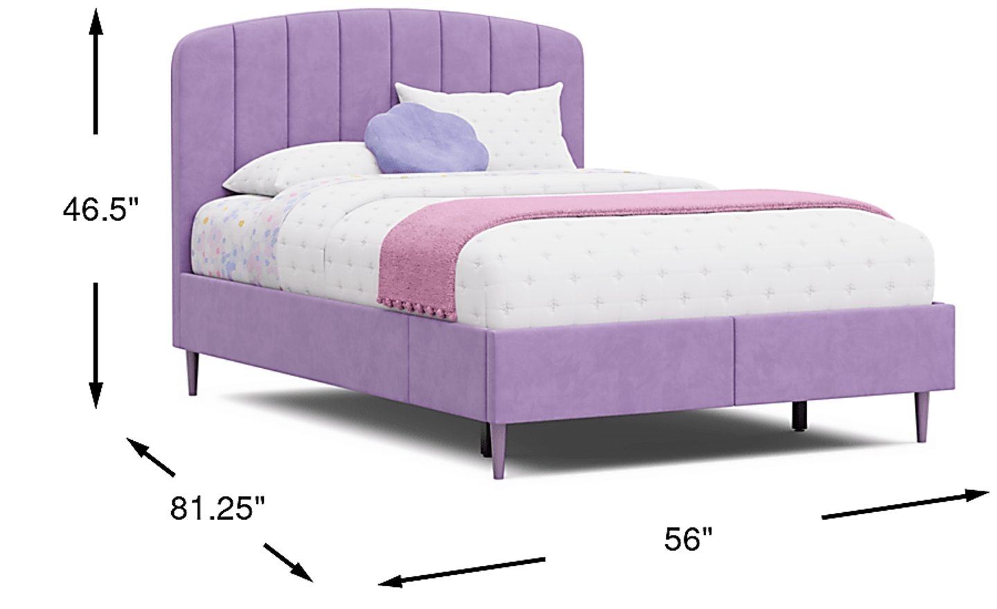Soft, sweet and altogether spectacular, the Gwyneth bed is a gem for any kid's room. Fully upholstered with soft fabric in a lavender color, this full bed has a headboard with vertical channeling and a footboard with two storage drawers. Ball bearing glides make opening and closing the drawers easy. Featuring a "Grow with Me" design, two sets of feet are included with purchase. The first are rubber base glides that allow you to set the piece up as a Montessori-style platform bed. The second are taller, wooden legs that are painted to match the color of the fabric. For convenience, you can even store the set of feet you're not currently using in a hidden compartment located on the headboard. Mattress and foundation (if required) sold separately.