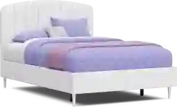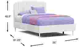 Soft, sweet and altogether spectacular, the Gwyneth bed is a gem for any kid's room. Fully upholstered with soft fabric in a white color, this full bed has a headboard with vertical channeling and a footboard with two storage drawers. Ball bearing glides make opening and closing the drawers easy. Featuring a "Grow with Me" design, two sets of feet are included with purchase. The first are rubber base glides that allow you to set the piece up as a Montessori-style platform bed. The second are taller, wooden legs that are painted to match the color of the fabric. For convenience, you can even store the set of feet you're not currently using in a hidden compartment located on the headboard. Mattress and foundation (if required) sold separately.