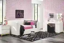 Soft, sweet and altogether spectacular, the Gwyneth daybed is a gem for any kid's room. Fully upholstered with soft fabric in a white color, this twin daybed features a high back and sides with vertical channeling for a cozy, lounge-ready look. A single storage drawer is built into the base of the frame, offering a smart solution for stashing bedding, toys, or clothes. Ball bearing glides make opening and closing the drawer easy. The drawer even comes with a divider that makes staying organized even easier. Mattress and foundation (if required) sold separately.