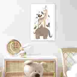 Let your little one answer the call of the wild with the Happy Safari Animals wall art. Printed with premium inks on high-quality canvas reveals rich colors and fine details while resisting fade. Each canvas is hand-stretched over a solid wood frame. Customer assembly is required.