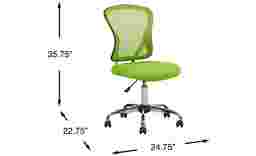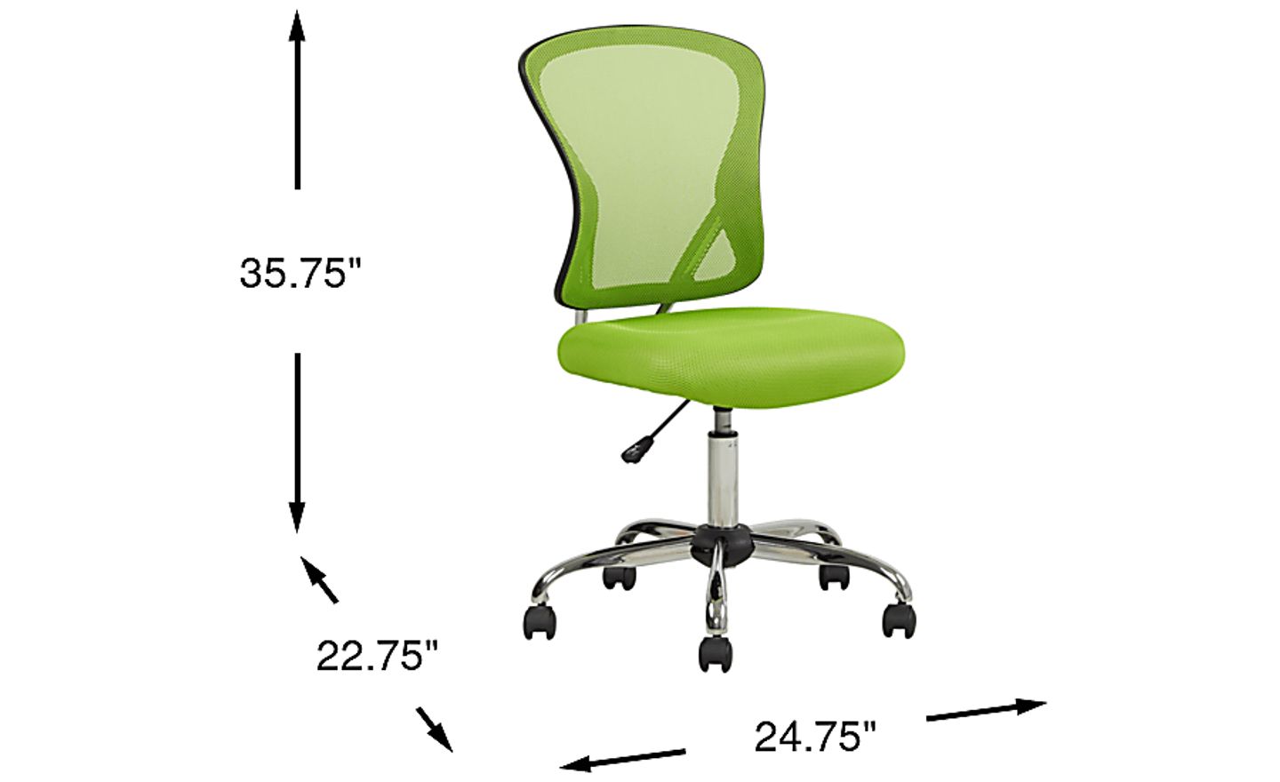 The cool Hayley desk chair adds a pop of color to any desk or study area. This fun chair has a mesh back and boasts a bright green color. The height of the seat is adjustable while the wheels below provide easy movement.