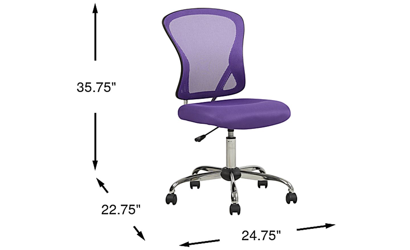 The cool Hayley desk chair adds a pop of color to any desk or study area. This fun chair has a mesh back and boasts a purple color. The height of the seat is adjustable while the wheels below provide easy movement.