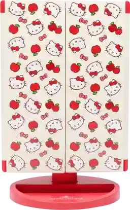Add a crisp touch of sweetness to your daily routine with the Hello Kitty Trifold LED Makeup Mirror. Open this trifold mirror to reveal three panels, effortlessly adjustable to provide you with the perfect angle for your makeup application. Customize your LED lighting to suit your unique makeup needs, with three adjustable light temperatures.