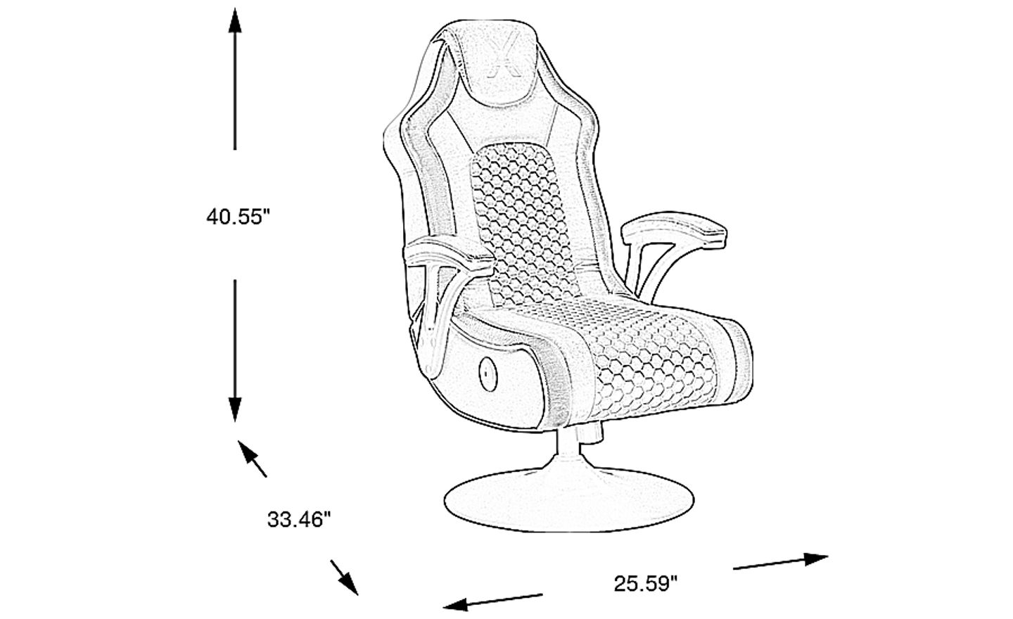 Whether you're all about RPGs or much prefer Sandbox mode, the Hi Score XP gaming chair upgrades your style to a whole new level! With a seat upholstered with soft fabric in a dark gray color overtop a large steel pedestal, this piece features a couple of must-have components for game time: USB-A and USB-C ports on the side of the chair are perfect for powering up some of your favorite electronic devices while an on/off switch powers up the LED lights for a symphony of beautiful colors that work in sync with your game to level-up the experience. Upholstery: 100% Polyester. The chair can pair with most major gaming systems.