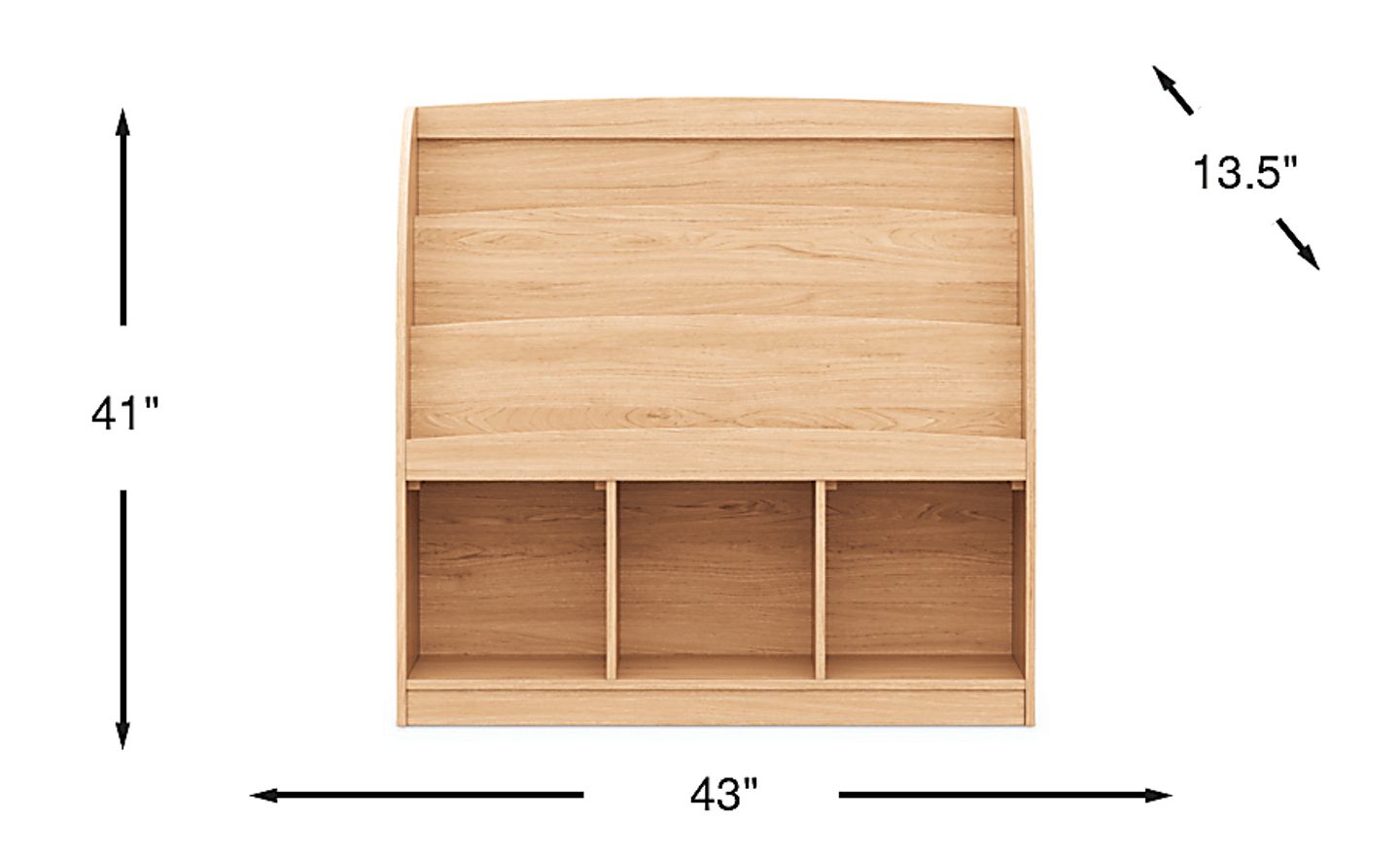 Standing at 41 inches tall, this bookcase is designed specifically for child-level accessibility. This height allows most children to reach the top shelf independently, encouraging them to pick out their own books and manage their own clean-up, which supports developmental goals of independence and organization.