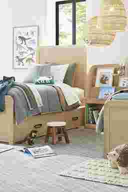 Where imagination stretches wider than the sky, where adventure awaits around every corner, treehouse or secret fort, the Hidden Hills collection from Drew & Jonathan sparks curiosity and beckons the whole family to find wonder and joy in every moment. Whether you want soft upholstered textures, cozy glimmers of light from LED-lit bookcase headboards or clever spaces to stash treasures and plug in USB-charged gadgets, this collection offers pieces to create a room where kids are inspired by play, curiosity and possibility. Mattresses and foundations (if required) sold separately.
