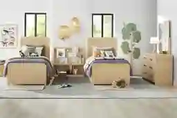 Kids Hidden Hills Light Oak Dual Twin Panel Bedroom