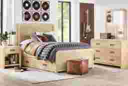 Kids Hidden Hills Light Oak Full Panel Bedroom with Dresser and Mirror