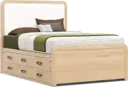 Kids Hidden Hills Light Oak Full Upholstered Panel Bed With 2 Storage Side Rails