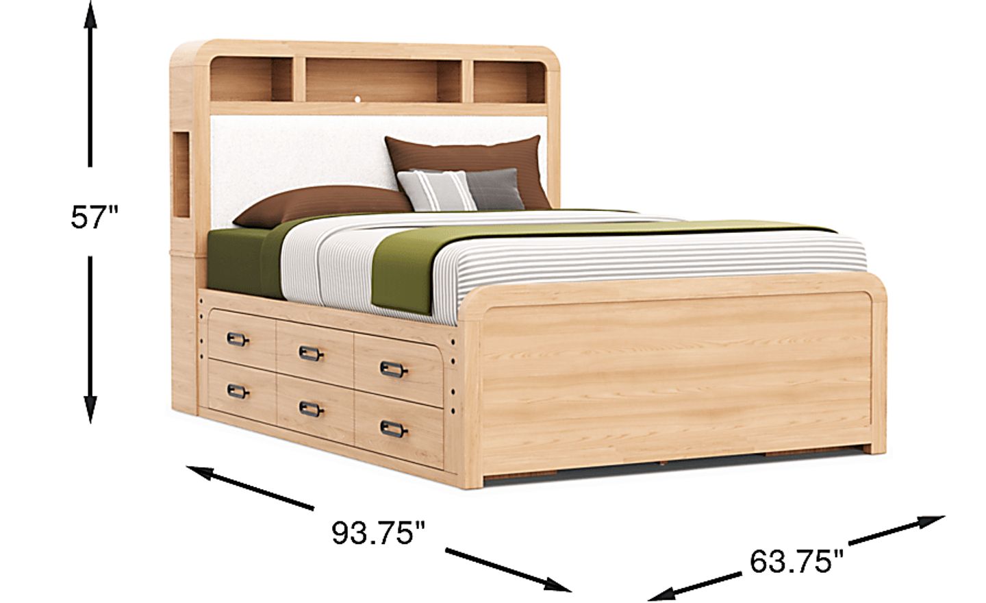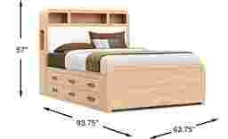 Kids Hidden Hills Light Oak Queen Bookcase Bed With 2 Storage Side Rails