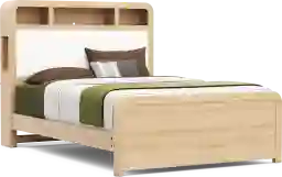 Discover cozy corners, secret spots and everyday surprises in the Hidden Hills bedroom collection by Drew & Jonathan. This bed features real oak wood veneers with a natural grain highlighted by a gentle, light finish that adds calm warmth to any child's space. The bed's bookcase headboard combines a trio of storage cubbies with a snowy boucle-upholstered panel, creating a cozy spot for lounging while keeping books and treasures neatly within reach. A white LED light strip and integrated USB-A and USB-C charging ports add tech-friendly convenience, while built-in cord management helps keep things tidy. Mattress and foundation (if required) sold separately.